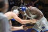 In perhaps the tourney’s most controversial moments, Loughney appeared to pin Robinson, and later seemed to gain additional back points – at least to the WMC crowd. But neither call went Loughney’s way. Robinson held on for a 6-5 victory with the WMC faithful shouting in dismay. Senior co-captain Thomas Stoll leapt to his teammate’s side after the disappointing result.