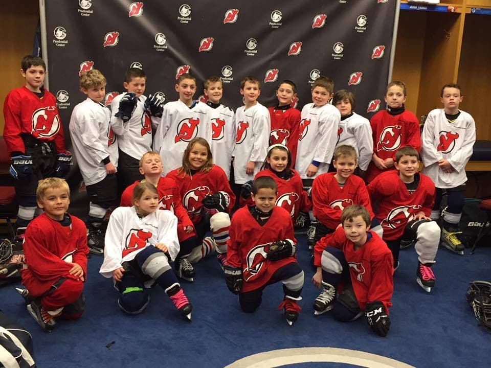 The Wolfpack Mites had one of the annual highlights of their season on Saturday when they participated in the New Jersey Devils’ “Marquee Matchup” on the ice at the Prudential Center in Newark. 19 mites hit the ice during the first intermission of the Devils-Oilers game to the roar of the crowd. Afterward along with their families everyone enjoyed cheering on the Devils. Footage of the “Marquee Matchup” can be found on the Wolfpack Facebook page. Many thanks to the Devils for making this fun event possible!
