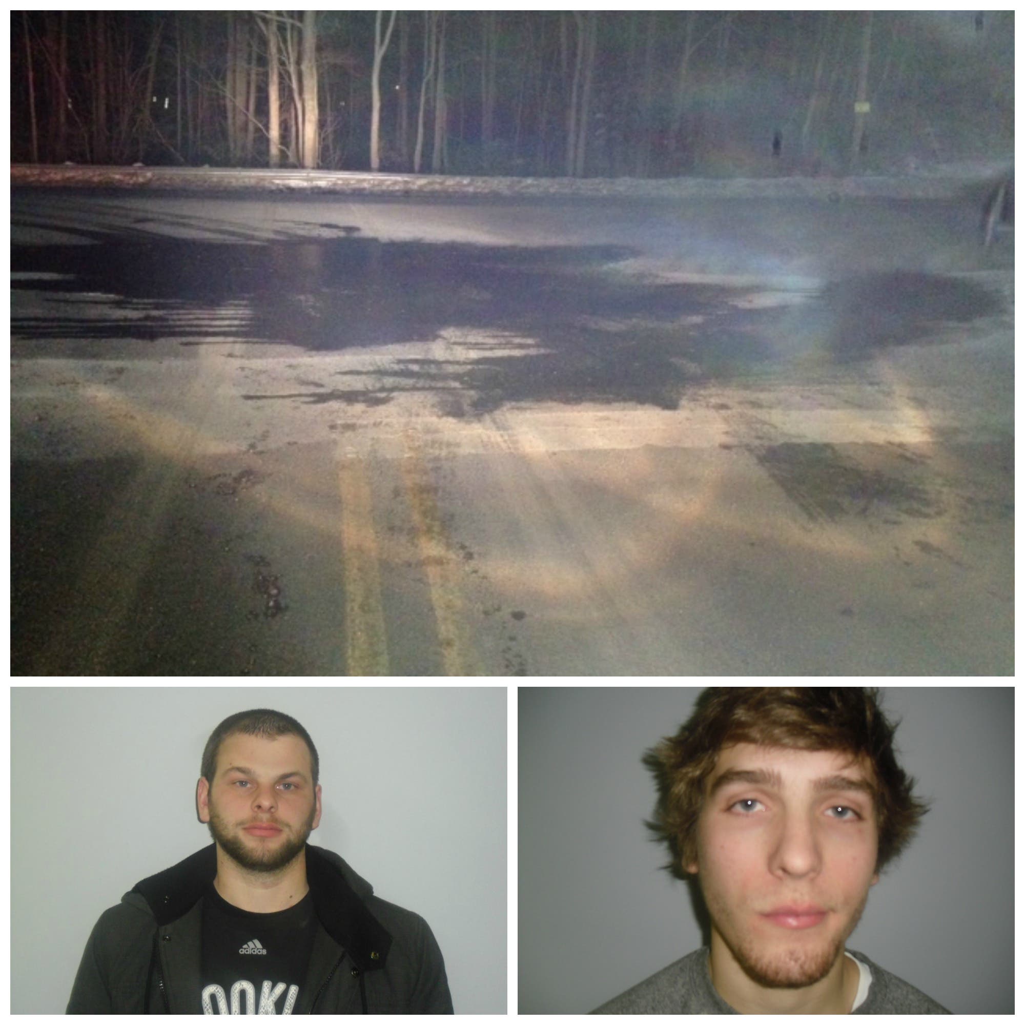 Pictured: Clockwise, from top: Intersection with water that became black ice; Alexander Zambenedetti; Brian Byers.