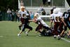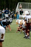 Once again the tough Vikings defense kept the Dodgers from converting a first down. Madison's Stephen Esposito punted to the Madison 44-yard line. The Vikings offense mixed running with passing. They were stopped by a hard hit by Christian Pedersen and another receiver was downed by Samara at the right sideline. However, the Viking passing game was strong and they threw into a first-and-goal at the 10-yard line, followed by a touchdown pass. The Dodgers defense blocked the extra point attempt, which ended the first half.
