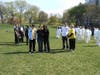 We meet near the pavilion at the rear of the pond that has a picnic tables.