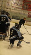 During the lessons, Randy focused mostly on the younger kids, teaching them some simple skating and tandem scoring drills, while his son Alex worked with the high school students.