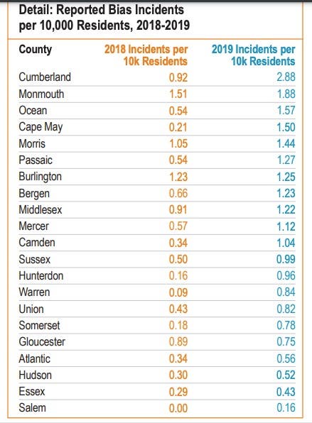New Jersey is no stranger to hateful acts. State police identified 994 bias incident offenses for 2019, nearly doubling the number since 2016.