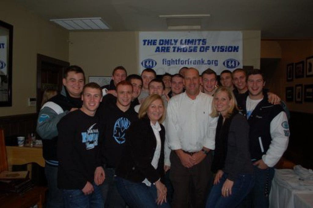 In December, at a ‘Fight for Frank’ fundraiser at the Mahwah Bar & Grill, the current MHS football team and coach Jeff Remo walked in unexpectedly with a $1,000 check for the fund.