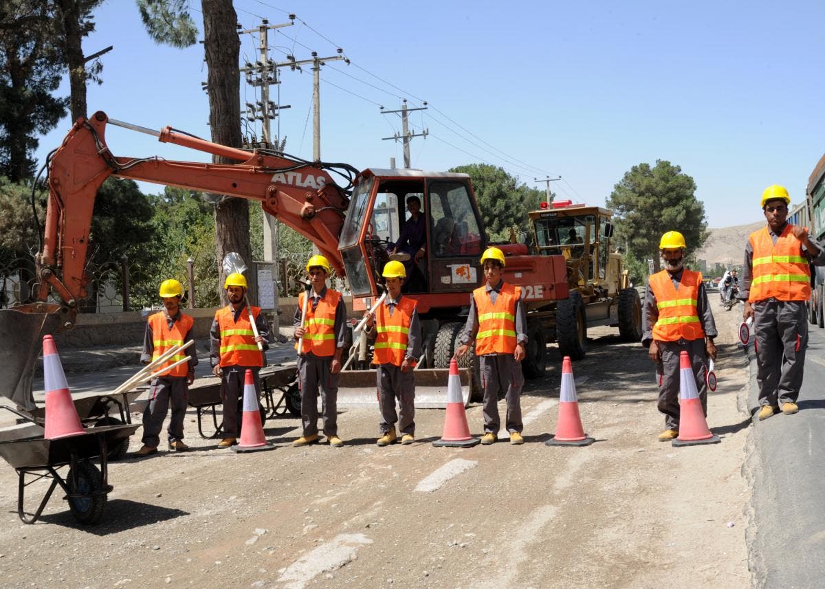 Photo: Construction workers at a job site. — Wikimedia Commons