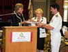 In honor of his three-year command of the Earle base, Monmouth County Library Commission Chair Renee B. Swartz and Freeholder Lillian G. Burry presented Capt. Harrison with a history book on the War of 1812.