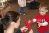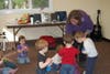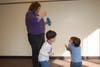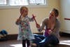 The tots work on rhythm and motor skills, while singing and dancing to Santoni’s original songs.