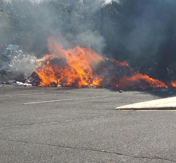 This was the scene Wednesday afternoon at the Wawa on Union Hill Road in Manalapan, after a garbage truck's contents ignited.