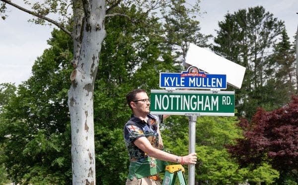 But the plaque now atop the sign on Nottingham Road where Kyle and his brother T.J. grew up, and where Regina Mullen still lives, is a bittersweet reminder of the loss of her "best friend and hero."