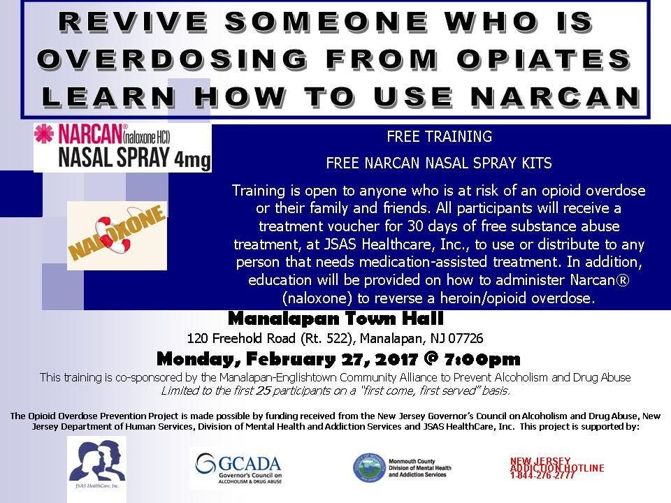 This training is co-sponsored by the Manalapan-Englishtown Community Alliance to Prevent Alcoholism and Drug Abuse and is limited to the first 25 participants on a “first come, first served” basis.