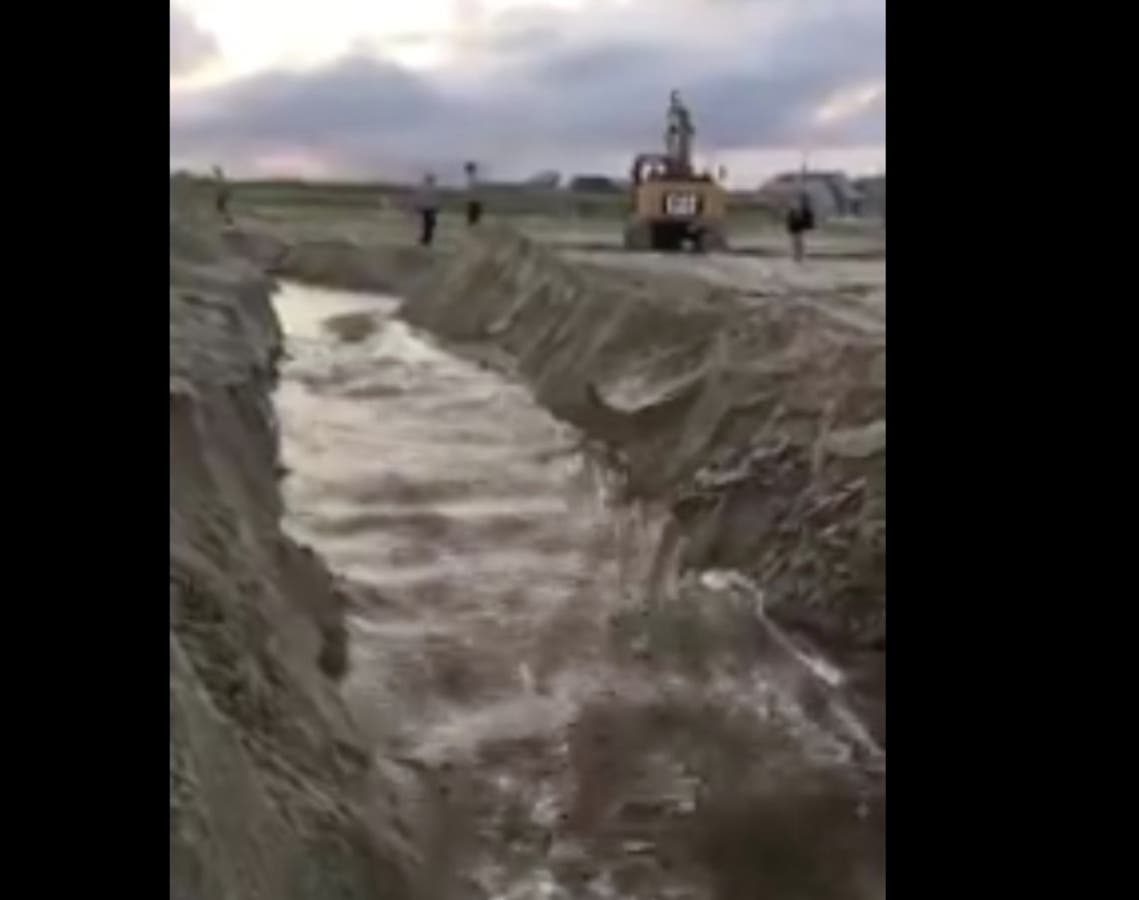 Sea Girt officials said they dug a trench to relieve the backlog of water that has made the sand unstable.