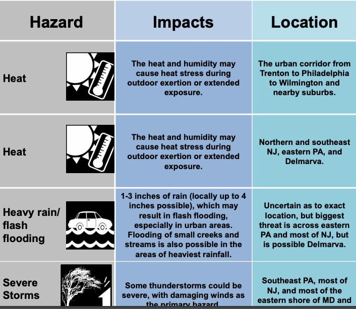 NEW JERSEY — New Jersey is now embarking on an impressive heat wave just as the remnants of Tropical Storm Barry are poised to bring strong to possibly severe thunderstorms on Wednesday afternoon and evening and also on Thursday. There may be torrential downpours during the thunderstorms.