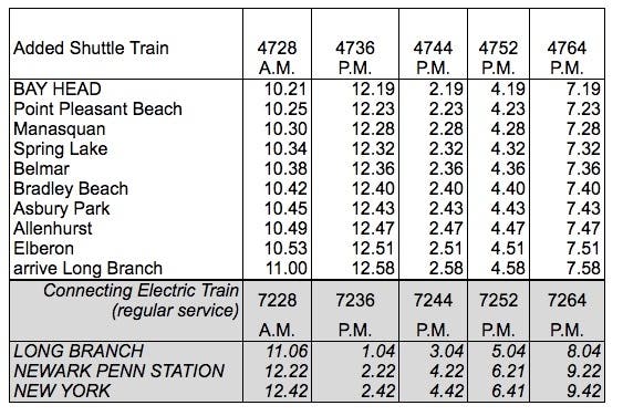 Additional Northbound Trains From Bay Head to Long Branch