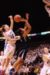 Fired up, she turned up the heat on the Knights, driving for a layup 25 seconds later, then hitting from long range with 42 seconds left for a four-point Manasquan lead. She hustled down, grabbed a rebound, dished to Marina Mabrey for a basket, then stole the ball and scored again on a fast break to make it 48-40.