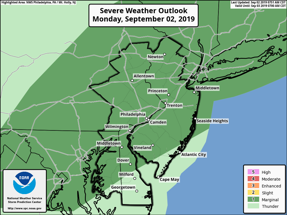 NEW JERSEY – Strong and even severe storms were possible in New Jersey on Labor Day while Hurricane Dorian already could be having an impact on the Jersey Shore.