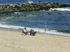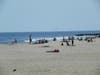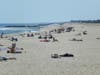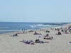 The unguarded ocean was a shivery 44 degrees, but the warm day found sunbathers taking to the unopen Belmar sands with beach chair and towel.