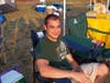 Jaclyn Lang, Brick – of the 12-person Team Dragon Slayer – rested up prior to the walk, and said, “This is my third Relay – I do it for family members who have passed, and friends who have survived.”