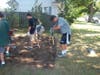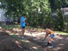 The steps to making the 60’ by 12’ court are actually quite simple, and began with Kuper and his team measuring out the space and marking it with spray paint. The group then dug down six inches, roto-tilled any lumpy areas, and leveled the dirt with rakes. When all the digging and leveling were done, wood in measurements of 2” by 12” by 12” selected by Kuper was inserted around the outer rim of the court.