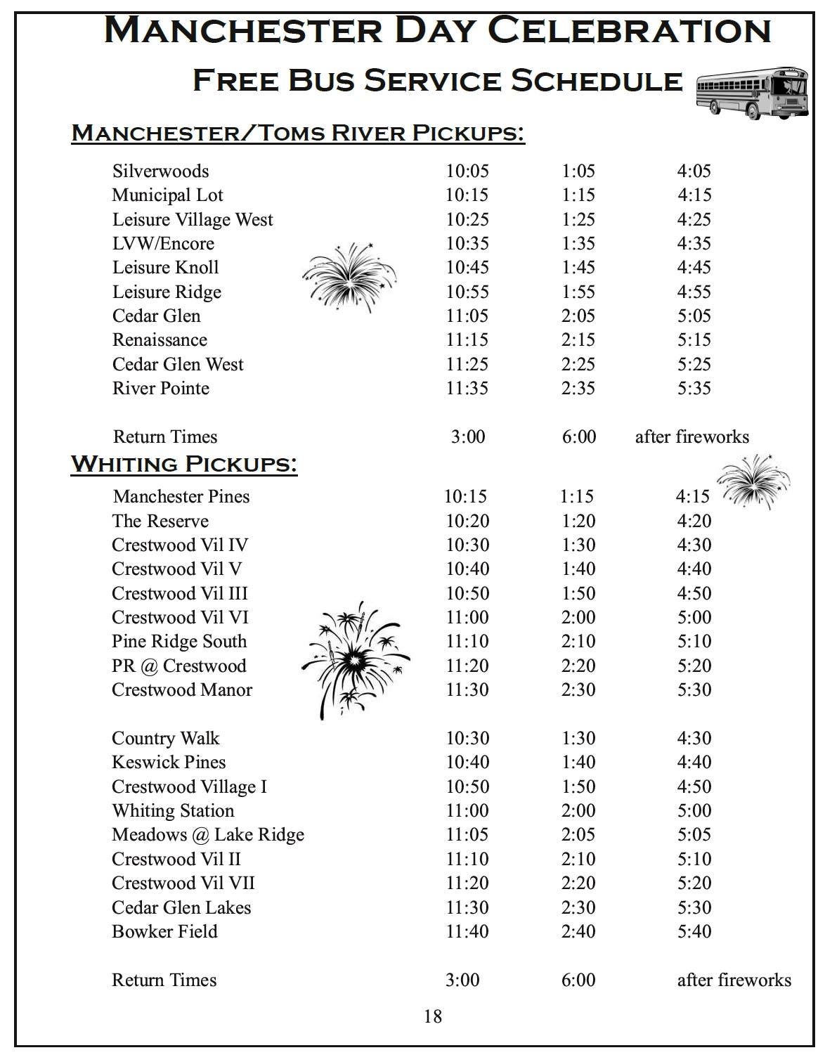 A free shuttle bus will be running during Manchester Day — the schedule is below.