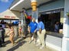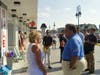Arriving at by helicopter and then being shuttled to the beachfront in an SUV, Christie spoke briefly and then took questions from the press before strolling the boardwalk and greeting constituents.
