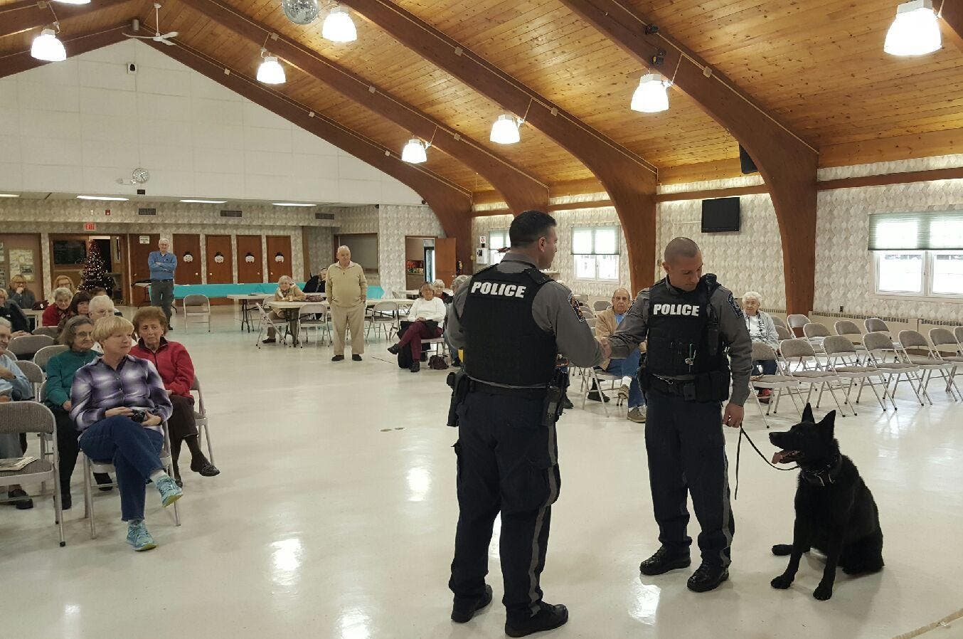 Micciulla and Wendruff, along Patrol Sgt. Robert Sharry, conducted a K-9 demonstration for the Crestwood Village II Residents Club, demonstrating how well Storm and Lynk listened to their handlers, how they were able to detect drugs, and how they apprehend criminals, according to a news release from Capt. Todd Malland.