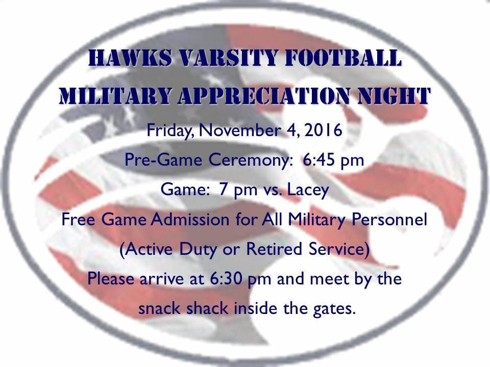 MANCHESTER, NJ — Manchester Township High School is hosting its second annual Hawks Varsity Football Military Appreciation tonight at Manchester Township High School.