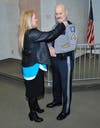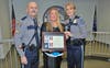 Following the recognition ceremony, Higgins’ first official duty as corporal was to present Tracy Thompson with a plaque from the American Federation of Police awarding Cpl. Scott Thompson with the American Police Hall of Fame Medal of Honor.