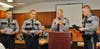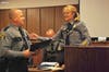 Photo 1: Patrolman Patrick Mabie, Patrolman Michael O’Hara, and Patrolman Charles Gatnarek receive the Meritorious Service Award from Capt. Todd Malland.