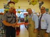 (Photos courtesy of ShopRite of Manchester and the Manchester Township Police Department. 1. Mayor Kenneth Palmer, center, poses with Patrolman Michael Terranova, left, and ShopRite Manager Paul Spence at the “Help Bag Hunger” event. 2. Patrolman John Decker helps to bag groceries.)