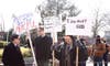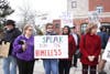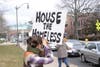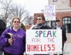 About two dozen protesters marched outside the Ocean County Courthouse on Hooper Avenue, many holding signs that said "Speak for the Homeless" and "Save Tent City."