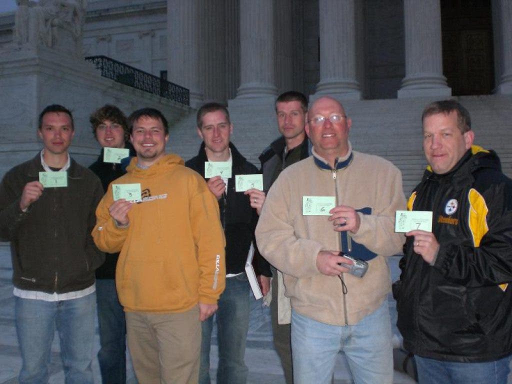 The question whether the right to keep (own) and bear (carry) arms (not just guns) is predicated on service within the militia was recently answered by the Supreme Court. See the landmark case District of Columbia vs. Heller. The court correctly concluded the right to self defense is individual. I was crazy enough to sleep on the street in front of the Supreme Court building for 23 hours in a lawn chair to be number sixth in line for oral arguments. In the accompanying photo, I am wearing the beige Patagonia jacket made with recycled fibers so you see it is also possible to be a gun owner and green at the same time.