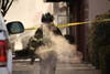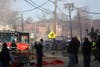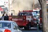 An eyewitness said smoke was visible coming out of a door from the basement on the sidewalk before firefighters arrived. The fire was first reported as a manhole fire.