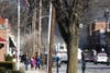 Traffic on Millburn Avenue in the area was shut down. Despite the bitter cold, a crowd of spectators gathered across the street at Cait and Abby's Bakery. Also, there were people sitting in Enzzo's Restaurant watching the firefighters work.