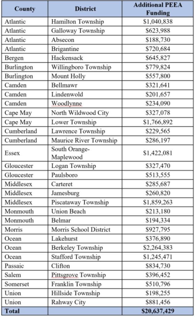 According to a statement from Murphy’s office, the SOMA school district will get an additional $1,422,081 of PEEA funding, part of an overall package of $20.6 million to 31 eligible districts throughout New Jersey.