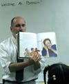 Hank Zona of Swirl Wine Events kept his presentation sober but fun. (Zona is also the parent of an MMS student.) "I read to Roger Johnson's 8th grade 2nd period science class," said Zona. "Being that they are 8th graders, I decided to read a lot of shorter pieces rather than one book. It was fun because as I looked around the class, I told them that I had read to some of them at Morrow preschool, some of them at Tuscan, and now this group on the verge of high school."