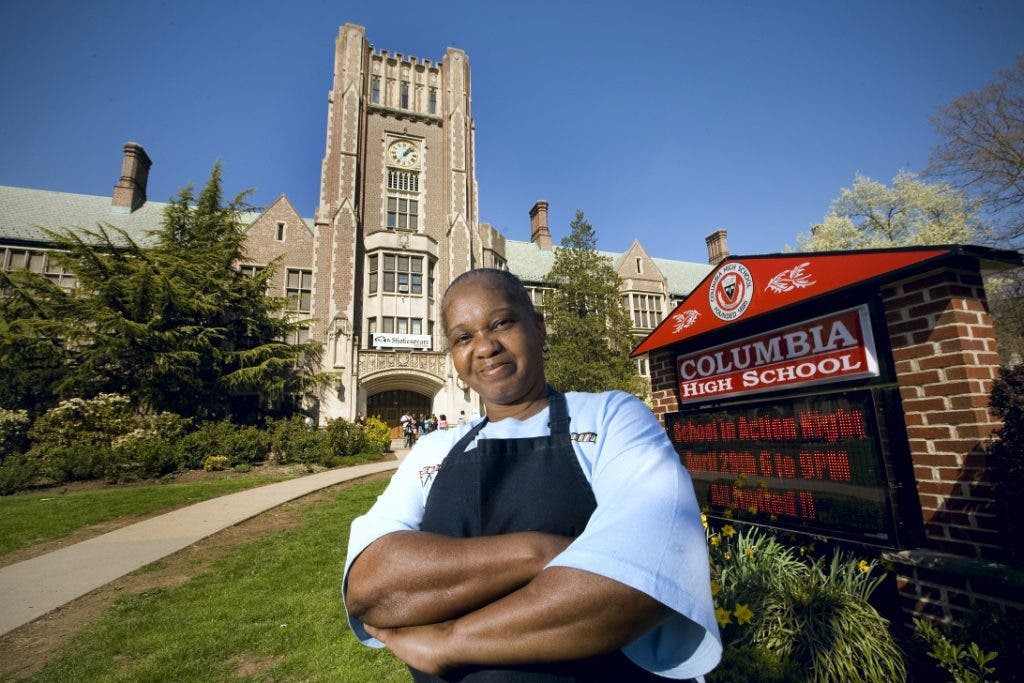 According to shop steward Hazel Wollard, who's worked in the cafeteria at Columbia High School since 1996, the petition that she worked to circulate outside of work bore 23 or 24 signatures, which constitutes more than 50 percent of the 42 or 43 workers. Though she's aware of four or five workers who were disgruntled because of having to pay union dues, she feels confident that the majority still support 32BJ.