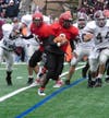 Maybe the biggest defensive play of the game came in the third quarter, with Nutley threatening to tie the game at 14. On fourth and goal from the nine-yard line, Nutley quarterback Billy McLellan found Anthony Sibilia on a short dump-off pass. The senior back tried to power into the end zone, but Ify Asoluka was having no part of it. The senior defensive back drilled Sibilia, stuffing him at the two yard-line, giving the ball back to Columbia, which was still nursing its seven point lead.