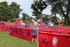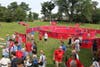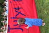It was a hot, sunny day down in Memorial, but that didn't phase anyone. At least 300 people flocked to the "amphitheater" to be a part of a wonderful artwork. 'Wave the Flag' was fun for all ages. The kids were entertained by makeshift musical equipment and painting patriotic messages across a maze of red banners. Adults were snapping photos and laughing amongst each other.