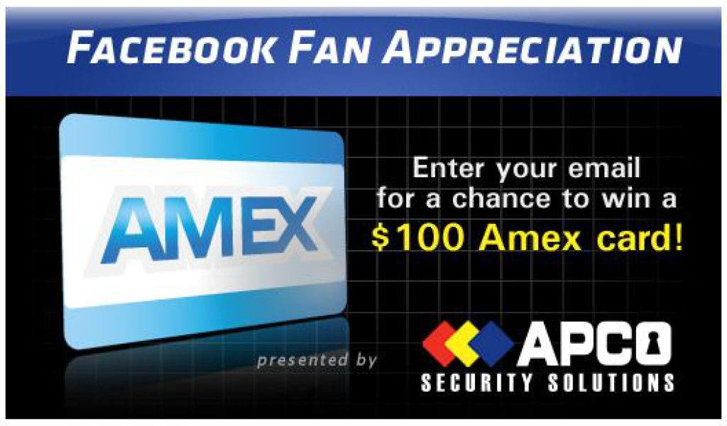 We all could use a little extra cash these days. That’s why APCO Security Solutions, of Manalapan, is celebrating loyal customers and fans with a Facebook contest where fans can win a $100 American Express gift card!