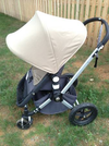 Selling a Bugaboo Cameleon stroller with two sets of fleece (tan/orange), orange breezy canopy, two cup holders, unused rain cover, foot muffler (grey) and unused bassinet. $350 OBO