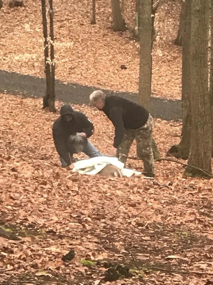 The rescue workers then left the scene, but then received a second call from the homeowner saying that the young buck had laid back down again, and had labored breathing.