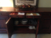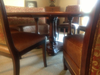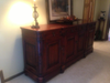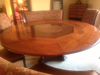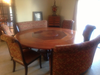 86" Round Cherry & Burl wood table, including 4 leaves & lazy susan. 4 leather & fabric back chairs with 2 curved booths. Chip on one leaf. Pedestal base has damage on one corner. Paid $15000.00, asking $6000.00. 97" solid walnut china cabinet. Excellent condition. Paid $5000.00, asking $2000.00. hbl1285@aol.com