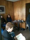 Refugees from continuing power outages waited patiently on folding chairs for a chance to plug into one of several power strips laid out on a card table, with an extension cord running out the door to a humming portable generator.