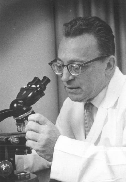 Photo courtesy George F. Smith Library of the Health Sciences/Rutgers University; Oscar Auerbach painstakingly examined microscopic changes in lung tissue to prove that smoking causes lung cancer.