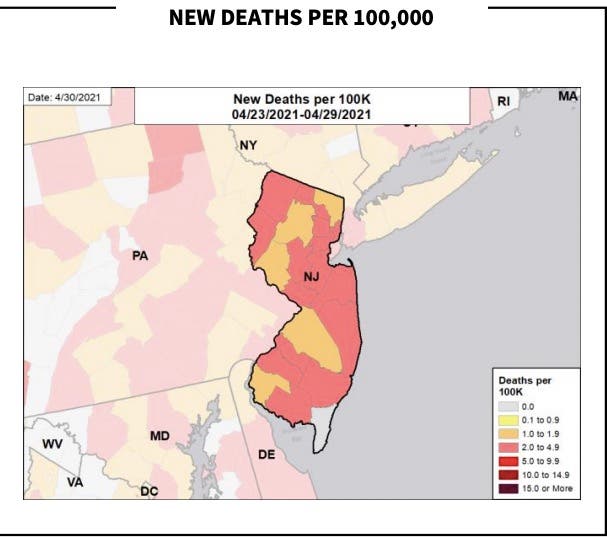 The new report comes as Murphy has now reopened significant portions of the state's economy. Capacity restrictions will be removed in many areas of New Jersey life over the next two weeks as the state nears its goal of fully vaccinating 4.7 million people by June. Read more: 'Major' COVID-19 Reopening In NJ: Here's What's Planned