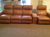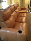 Leather/ motorized recliner. Table in between access underneath to be bolted to floor. 7/8 year old, one chair ripped in seam at foot rest. 800.00