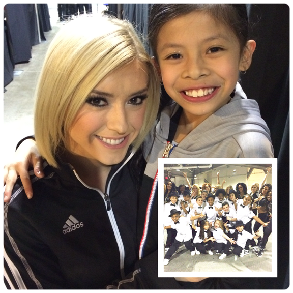 Arts In Motion Academy alum Alexa Kobylarz, a member of the Brooklyn Nets Brooklynettes dance team, alongside AIM Academy student and Nets Kidz dancer Jhailyn Farcon at the NBA All-Star Slam Dunk. They helped open the contest, which was shown live on FX this past Sunday! Center court with the Barclays Big Band, both the Brooklynettes and Nets Kidz perform to “Uptown Funk.”