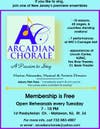 If you have a good singing voice and seek a challenging and fulfilling musical experience, you may want to check out the Arcadian Chorale, which will be auditioning new members this week.