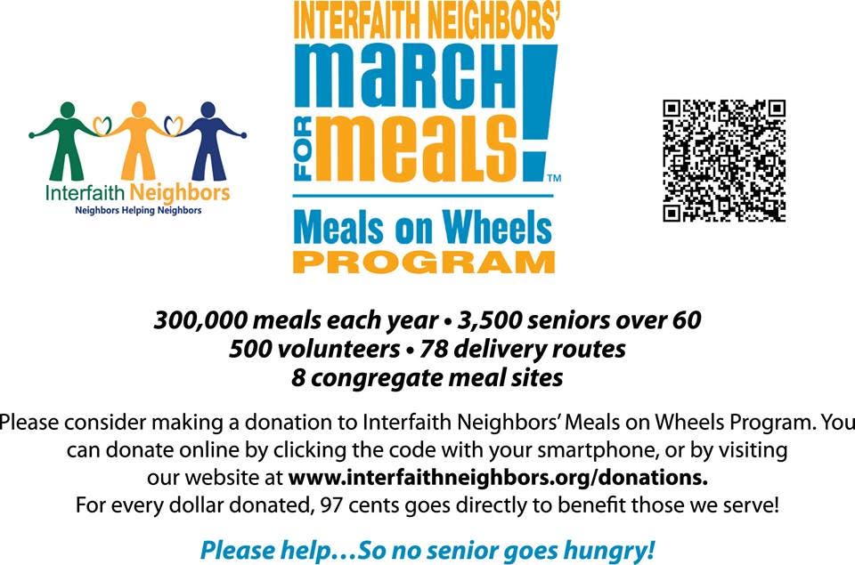 Interfaith Neighbors is seeking volunteer drivers with an hour to spare each week to deliver Meals on Wheels mid-day to homebound seniors.