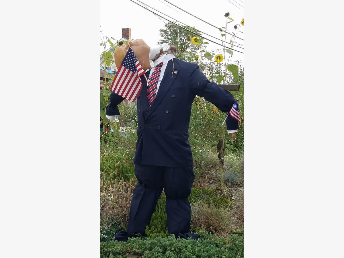 A Keyport resident who is a Donald Trump supporter submitted the scarecrow. Carew said she worked very hard on it and meant it as a positive, entertaining gesture. Carew said the library received three threatening phone calls over it, all of them demanding the scarecrow be taken down. He said he thinks the phone calls are from Trump supporters, who find the scarecrow disrespectful. Still, he said, the Friends of the Library have no intention of taking it down, saying it would stifle the creative nature of the contest. A George W. Bush scarecrow was submitted in previous years, he pointed out.